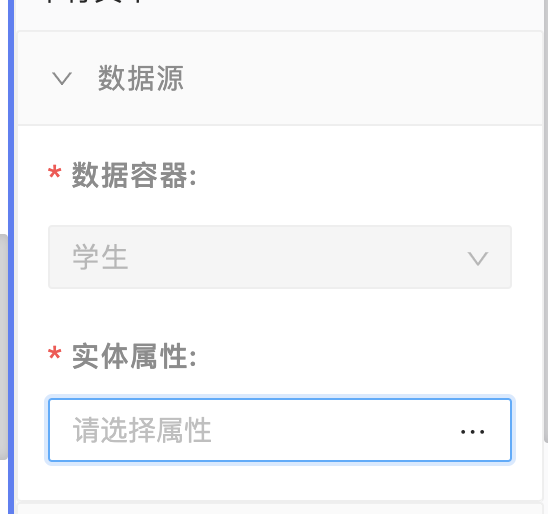 1.数据容器配置:是指单行文本元件上一层的数据容器比如数据视图绑定的实体(比如本文示例选择的外层表单容器绑定了学生表)